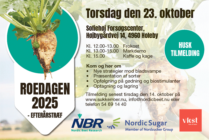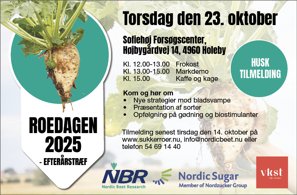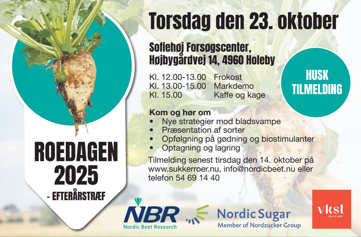 13. oktober 2025 Efterårstræf 23. oktober 2025 på NBR Torsdag den 23. oktober 2025 afholdes der efterårstræf på Sofiehøj Forsøgscenter, Højbygårdvej 14, 4960 Holeby fra kl. 12. Tilmelding senest den 14. oktober kan foretages ved klik HER. Se programmet her: Roedag 2025 Efteraar